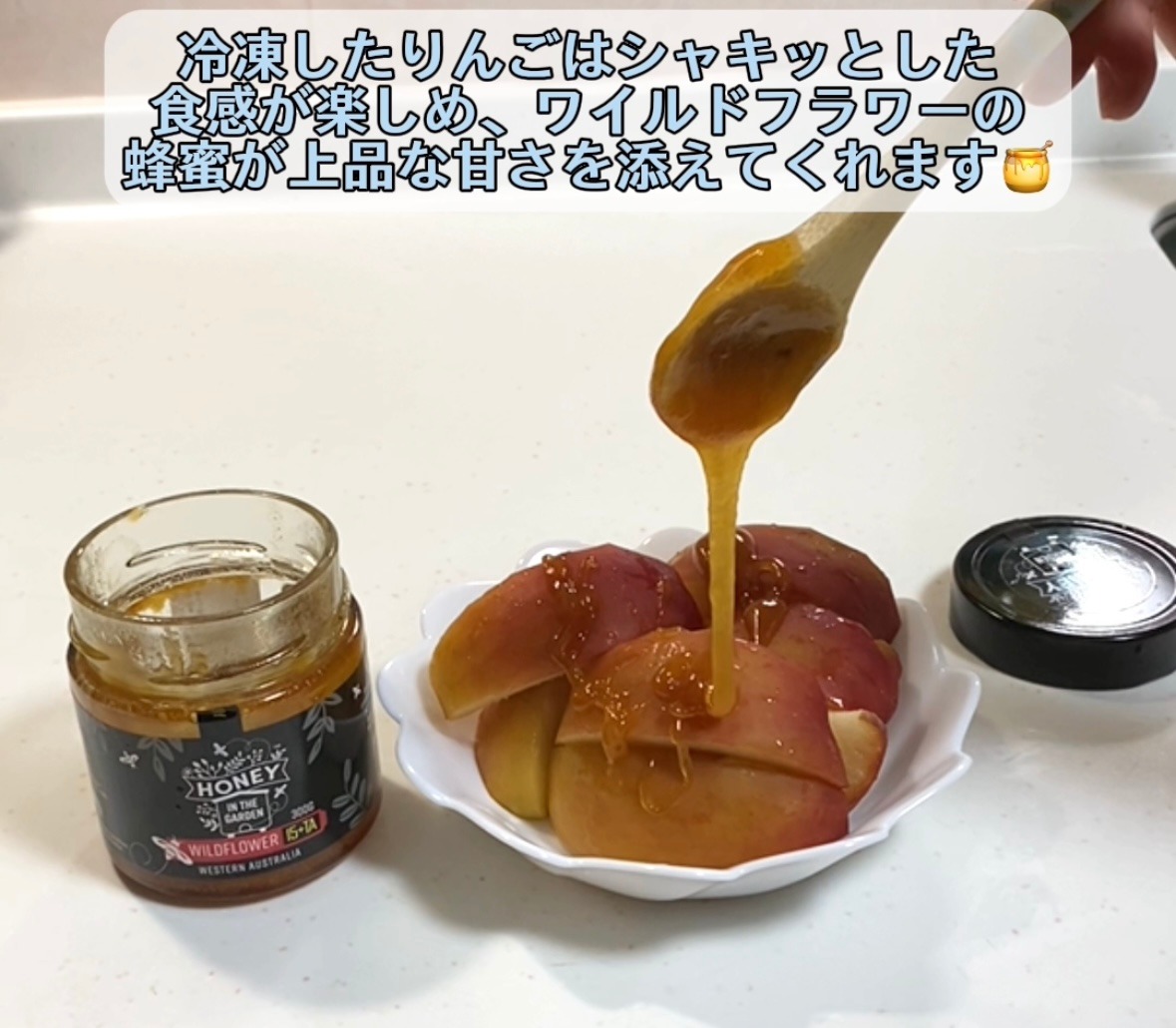 りんごを冷凍すると、シャキッとした食感が楽しめ、ワイルドフラワーの蜂蜜が上品な甘さを添えてくれます🍯