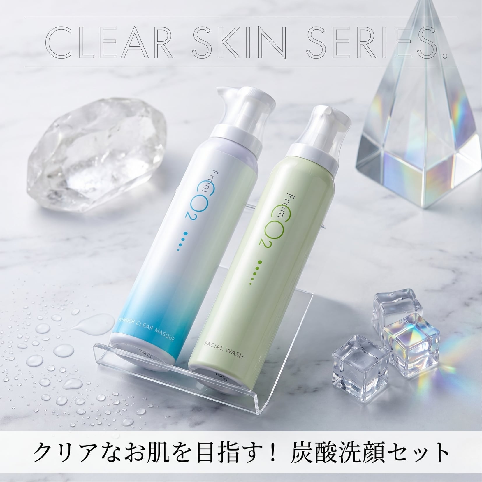 高濃度炭酸×国産クレイのダブルクリアマスク(限定商品)がフェイシャルウォッシュとセットでお得にお求めいただけます。